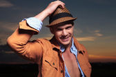 moda mężczyzna leży na podłodze, ustalenie jego włosy.