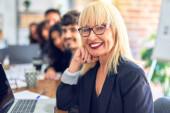 Siwe włosy biała kobieta z skrzyżowanymi ramionami w biurze