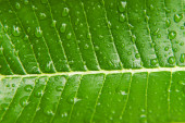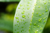 Makro zbliżenie Piękny świeży zielony liść z kroplą wody w słońcu rano natura tło.