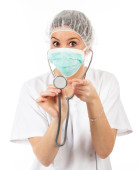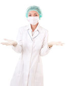 przerażające kobiece kobieta lekarz chirurg maski i gumowe rękawice isol