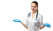 Zdjęcie "Szczęśliwa młoda kobieta lekarz wskazując na coś na białym tle" może być wykorzystywane do celów osobistych i komercyjnych zgodnie z warunkami zakupionej licencji Royalty-free. Obraz jest dostępny do pobrania w jakości wysokiej rozdzielczości do 5760x3840.