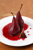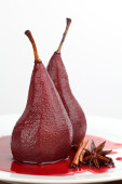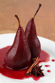 gotowany gruszki w wina barmańskie z cynamonu na białym tle