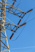 pylon linii transmisji wysokiego napięcia z samolotu znak za.