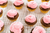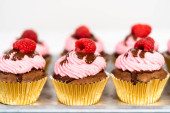 Zdjęcie "Lukier czekoladowy babeczki z kremem malinowym ser maślany." może być wykorzystywane do celów osobistych i komercyjnych zgodnie z warunkami zakupionej licencji Royalty-free. Obraz jest dostępny do pobrania w jakości wysokiej rozdzielczości do 5760x3840.