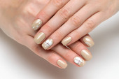 Francuski manicure z malowane stokrotki na małych kwadratowych paznokciach