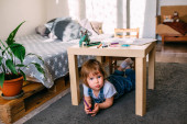 Zdjęcie "Dziecko bawi się w domu gra edukacyjna z wielokolorowe puzzle magnetyczne" może być wykorzystywane do celów osobistych i komercyjnych zgodnie z warunkami zakupionej licencji Royalty-free. Obraz jest dostępny do pobrania w jakości wysokiej rozdzielczości do 5760x3840.