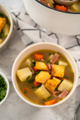 Zdjęcie "Podawanie zupy z makaronem z kluski w białych ceramicznych miskach zupy." może być wykorzystywane do celów osobistych i komercyjnych zgodnie z warunkami zakupionej licencji Royalty-free. Obraz jest dostępny do pobrania w jakości wysokiej rozdzielczości do 5760x3840.