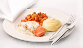 Filet polędwicowy indyczy z przyprawami w plastikowej tacce izolowany na białym