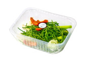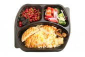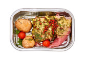 Filet polędwicowy indyczy z przyprawami w plastikowej tacce izolowany na białym