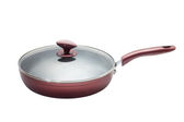 purpurowy żeliwny rondel do smażenia. Piec holenderski, izolowany na biało