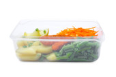 samfir i wiosenna cebula z suszonym na słońcu pomidorem w tacy parowej, izolowane na białym