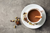 Zupa dyniowa i marchewkowa, tadka ze śmietaną i pietruszką na ciemnym drewnianym tle. Widok z góry.