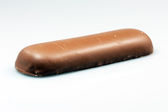 Tradycyjny francuski deser. eklerka z kremem i polewą czekoladową na białym tle. Wyroby cukiernicze na słodycze.