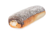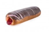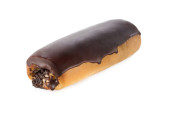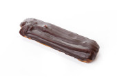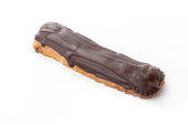 Tradycyjny francuski deser. eklerka z kremem i polewą czekoladową na białym tle. Wyroby cukiernicze na słodycze.