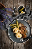 Zdjęcie "Schab z grilla z cebulą i pieczarkami, podawany z tłuczonymi ziemniakami." może być wykorzystywane do celów osobistych i komercyjnych zgodnie z warunkami zakupionej licencji Royalty-free. Obraz jest dostępny do pobrania w jakości wysokiej rozdzielczości do 5760x3840.