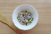 Zdjęcie "Przenieść marynowaną cebulę do miski sałatkowej.." może być wykorzystywane do celów osobistych i komercyjnych zgodnie z warunkami zakupionej licencji Royalty-free. Obraz jest dostępny do pobrania w jakości wysokiej rozdzielczości do 5760x3840.