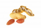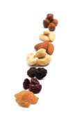 Różnorodnych mieszanek orzechów, białe tło. Widok z góry.