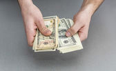 Człowiek liczący pieniądze, koncepcja ekonomiczna, alokacja pieniędzy.Kryzys po epidemii covid-19..