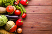 świeżych organicznych warzyw na drewnianym stole, z bliska
