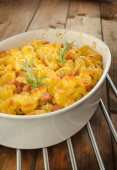 Zdjęcie "domowy makaron zapiekany z porów, boczek i krem" może być wykorzystywane do celów osobistych i komercyjnych zgodnie z warunkami zakupionej licencji Royalty-free. Obraz jest dostępny do pobrania w jakości wysokiej rozdzielczości do 5760x3840.