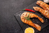 Zdjęcie "grillowane steki rybne na czarnym stole" może być wykorzystywane do celów osobistych i komercyjnych zgodnie z warunkami zakupionej licencji Royalty-free. Obraz jest dostępny do pobrania w jakości wysokiej rozdzielczości do 5760x3840.