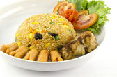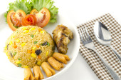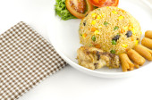 Amerykański smażony ryż na białym tle
