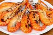 słodkowodne krewetki z grilla na pożar gotowy do jedzenia na biały danie