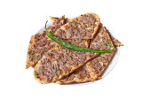 Pita z mięsem mielonym, papryką, pomidorami i cebulą, widok z góry