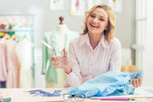 Piękna dziewczyna w sukienka jest uśmiechnięty wybór innej sukni w jej garderoba