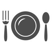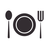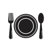 Talerze. Ikona widelca, łyżki i talerzy, logo menu, sylwetka sztućców. Miłość do jedzenia.