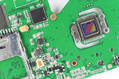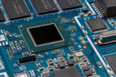 Szczegóły dotyczące elektronicznej tablicy karty graficznej. Zbliżenie potężnego procesora graficznego na tablicy kart graficznych