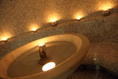 Wyposażenie wnętrz łaźni tureckich w luksusowym spa ze stołem do masażu i świecami