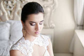 brązowooka brunetka. przy oknie. pozowanie na krześle. Ładna sukienka. .