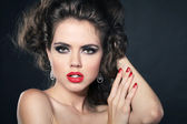 piękna modelka kobieta z falisty długie włosy i moda ea