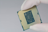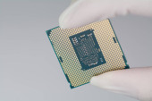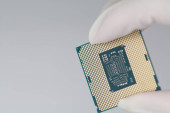 Szczypce utrzymujące procesor mikroprocesorowy na stosie chipów RAM odizolowanych na białym tle