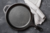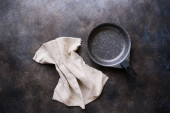 Zdjęcie "Dwie puste patelnie z bliska, widok z góry, miejsce na tekst" może być wykorzystywane do celów osobistych i komercyjnych zgodnie z warunkami zakupionej licencji Royalty-free. Obraz jest dostępny do pobrania w jakości wysokiej rozdzielczości do 5760x3840.