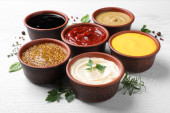 Zdjęcie "Wiele różnych sosów na białym drewnianym stole" może być wykorzystywane do celów osobistych i komercyjnych zgodnie z warunkami zakupionej licencji Royalty-free. Obraz jest dostępny do pobrania w jakości wysokiej rozdzielczości do 5760x3840.
