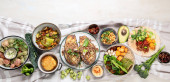 Zdjęcie "Asortyment dań wegańskich na jasnym tle. Śródziemnomorska koncepcja diety. przestrzeń kopiowania" może być wykorzystywane do celów osobistych i komercyjnych zgodnie z warunkami zakupionej licencji Royalty-free. Obraz jest dostępny do pobrania w jakości wysokiej rozdzielczości do 5760x3840.