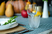 selektywna ostrość dekoracyjnego królika i świecy na stole serwowane na Wielkanoc obiad, sztandar