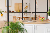 Zdjęcie "Zlew z bukietem pięknych kwiatów w kuchni" może być wykorzystywane do celów osobistych i komercyjnych zgodnie z warunkami zakupionej licencji Royalty-free. Obraz jest dostępny do pobrania w jakości wysokiej rozdzielczości do 5760x3840.