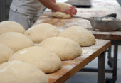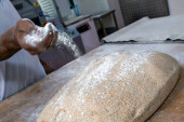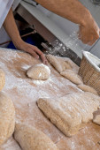 Porcje słodkiego ciasta chlebowego z nieostrym pieczywem w tle. Sao Paulo, Brazylia