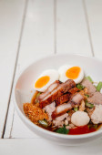 Japoński tonkotsu ramen i makaron z bulionu wieprzowego