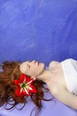 kobieta profil gospodarstwa ryb całowanie wyrażenie