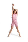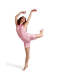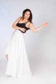 młoda kobieta tancerka robi ćwiczenia taneczne na białym tle