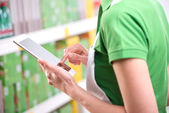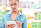 Zdjęcie "kobieta za pomocą tabletu w sklepie" może być wykorzystywane do celów osobistych i komercyjnych zgodnie z warunkami zakupionej licencji Royalty-free. Obraz jest dostępny do pobrania w jakości wysokiej rozdzielczości do 5760x3840.
