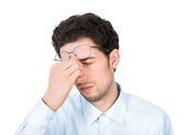 biznesmen martwi się ból głowy podkreślił i smutny