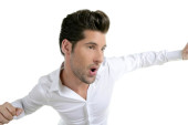 Zdjęcie "śmieszne gest, taniec młody mężczyzna na białym" może być wykorzystywane do celów osobistych i komercyjnych zgodnie z warunkami zakupionej licencji Royalty-free. Obraz jest dostępny do pobrania w jakości wysokiej rozdzielczości do 5760x3840.