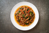 Smażona chińska oliwka z mieloną wieprzowiną - azjatycki styl jedzenia