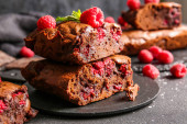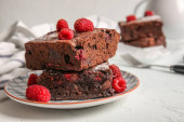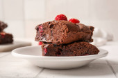Płyta z kawałkami pysznych czekoladowych ciasteczek na jasnym tle