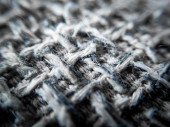 selektywna faktura tkaniny fokusowej na sofie makro tkaniny tło obraz tekstura szary wzór przeplatany czarnym